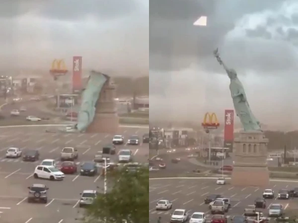 غیر ملکی میڈیا کے مطابق یہ واقعہ برازیل کے شہر گویبا میں پیش آیا، جہاں ایک فاسٹ فوڈ آؤٹ لیٹ کے قریب نصب 24 میٹر بلند اسٹیچو آف لبرٹی کا مجسمہ تیز ہواؤں کا مقابلہ نہ کر سکا اور زمین پر آ گرا۔ خوش قسمتی سے حادثے میں کوئی جانی نقصان نہیں ہوا۔