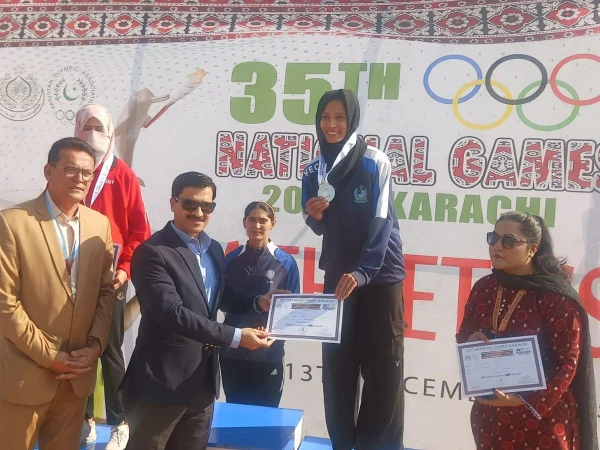 35 ویں نیشنل گیمز میں پاکستان واپڈا کی نورین فاطمہ نے 1.53 میٹرز کی چھلانگ لگا کر خواتین کی ہائی جمپ میں پہلی پوزیشن کے ساتھ گولڈ میڈل جیت لیا۔