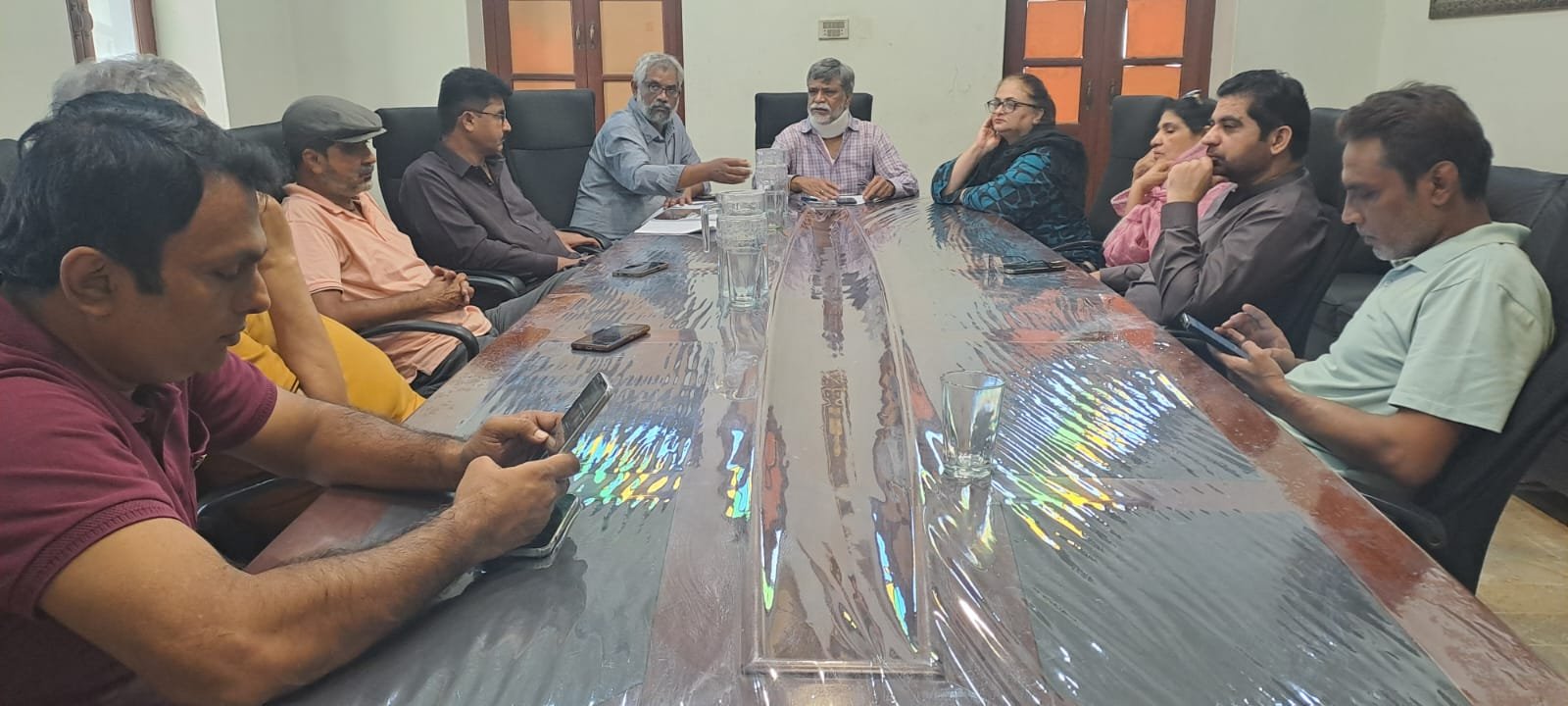 کراچی ٟ پ رٞکراچی یونین آف جرنلسٹس کا اجلاس صدر اعجاز احمد کی زیر صدارت کراچی پریس کلب کے کمیٹی روم میں ہوا۔ اجلاس میں نائب صدر محمد ناصر شریف، راہب گاہو،جنرل سیکرٹری لبنی جرار، خازن یاسر محمود، ارکان ایگزیکٹو کونسل شیریں جامی، سلطان چاکی، محمود ریاض، راشد صدیق، زوہیب زرداری ،اقتدار انور شریک ہوئے۔ اجلاس میں کے یو جے رکن واثق محمد، زبیدہ مصطفیٰ کے انتقال، سلیم خالق کی والدہ ،اظہر بھٹی کے والد دیگر ارکان کے عزیز و اقارب کے لیے دعائے مغفرت کی گئی۔ اجلاس میں پی ایف یو جے کے 75سال مکمل ہونے پر سینئرترین صحافیوں کے اعزاز میں ایک پروقار تقریب کے انعقاد کا فیصلہ کیا گیا ۔ تقریب میں صحافیوں کی جدوجہد پر روشنی ڈالی جائے گی
